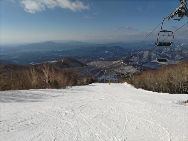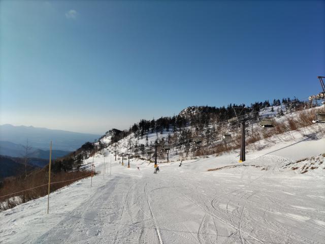 天気が良く寒すぎず暑すぎずで気温もちょうどいい感じでしたが、直近では雪は降ってないらしく雪質は少し固めでした。全面滑走可になっていたものの、高手ペアリフトが機器不具合のため運休だったため、高手スカイラインを滑るにはハイクアップしないといけない状態でした。ハイクアップする距離がそこそこあるのと、OFF THE PISTE 入る手続きした人しか行けないということで、誰も滑っているのを見ませんでした。高手スカイラインは、気持ちいいコースだし、OFF THE PISTE 入る手続きもしていたので、ハイクアップしてでも滑ろうかと少し考えましたが、さすがに距離がそこそこあるので諦めました。